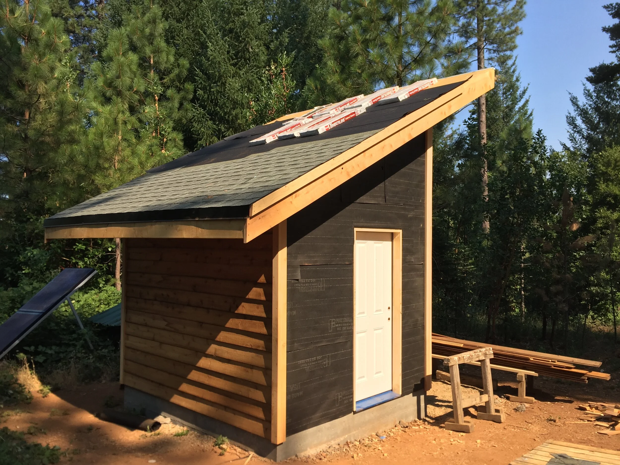 Purpose built, this shed acts as a power house for an off grid system. Born out of a need for a more protected alternative to a standard rack and pole system. Housed within are a 40 kw battery and inverter system, with room to spare for tools and storage. These heavy, lead-acid battery were the driving force behind the slab foundation. Direct-mounted to the roof is a 3.5 kw solar panel system.